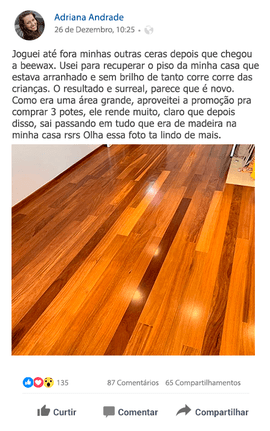 Além de limpar profundamente a superfície, dá um polimento magnífico, trazendo um brilho natural que só a cera de mel é capaz.