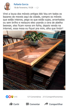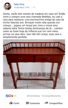 Com certeza seus amigos e familiares vão ficar impressionados com o antes e depois de seus móveis. Quem sabe não dá pra fazer uma renda extra usando a BeeWax?