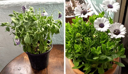 Graças a sua composição natural e sem agrotóxicos, nosso fertilizante recupera sua planta murcha, fazendo novos galhos crescerem mais saudáveis